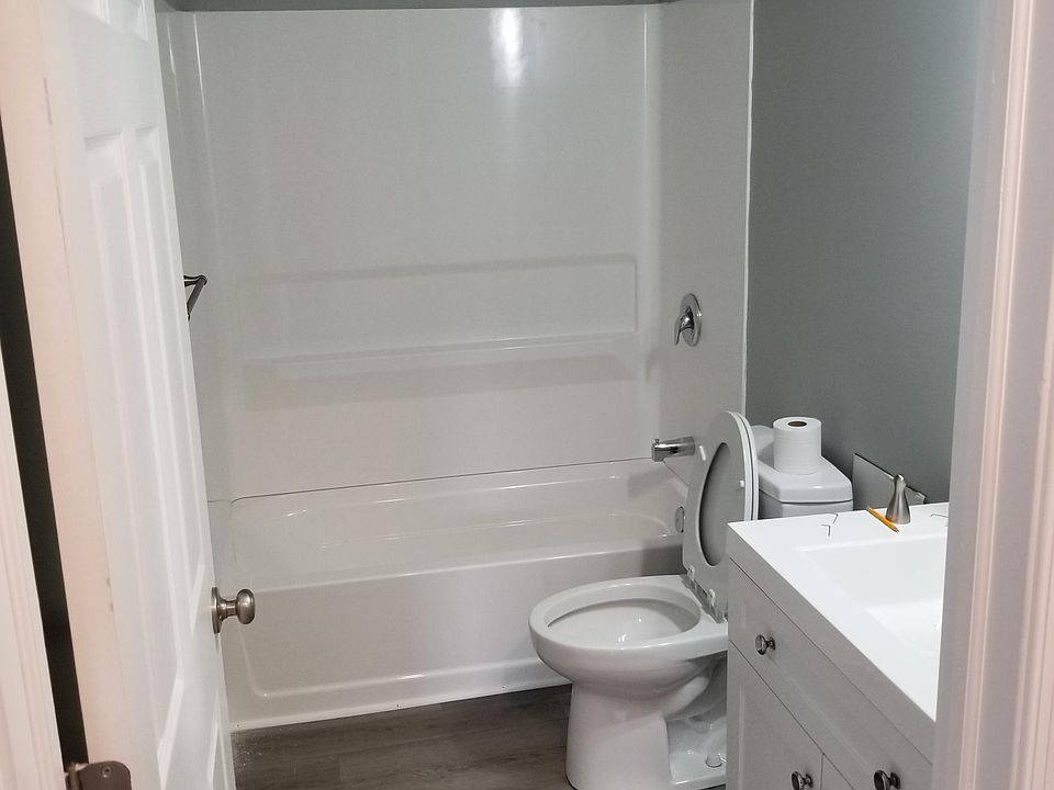 This apartment is situated on the 2nd floor of a converted 2 story house. The 1st floor is a commercial office space with a Completely renovated 2nd floor 2 bedroom apartment. Brand new kitchen, bathroom and flooring. Washer and dryer included. Kitchen is 9.5' x 14.5', Family Room 13' x 11', Bed 1 12' x 13'8", Bed 2 10' 4" x 12'. Allowance for 1 off street parking spot, No pets, Tenant pays Electric, water and garbage which is all included on the electric bill. This 2nd floor apartment has been completely renovated with all new electric, plumbing, fixtures. Forced hot air heat and central air conditioning.