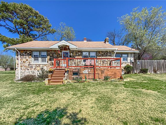 Home and detached garage both have an exterior finish of beautiful Ozark mountain stone.