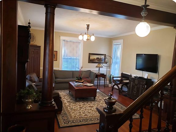 Summer sleeping porchLinen closetsSpacious primary bedroomWalk in closetHardwood floorsWide period moldingsLibrary or billiard room