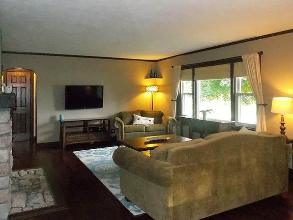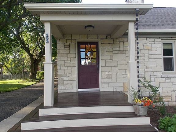 Character home with exposed brick, wainscoting and hardwood floors. Exquisitely updated kitchen w/SS appliances & butcher block counters. Living room features a stone fireplace. Basement rec/family room has a full bath & storage area. Workshop in garage and workshop in basement. Magnificent solid stone exterior. Large deck (36 x 18) & pergola overlook the privacy fenced landscaped yard. All updated! Move in ready.