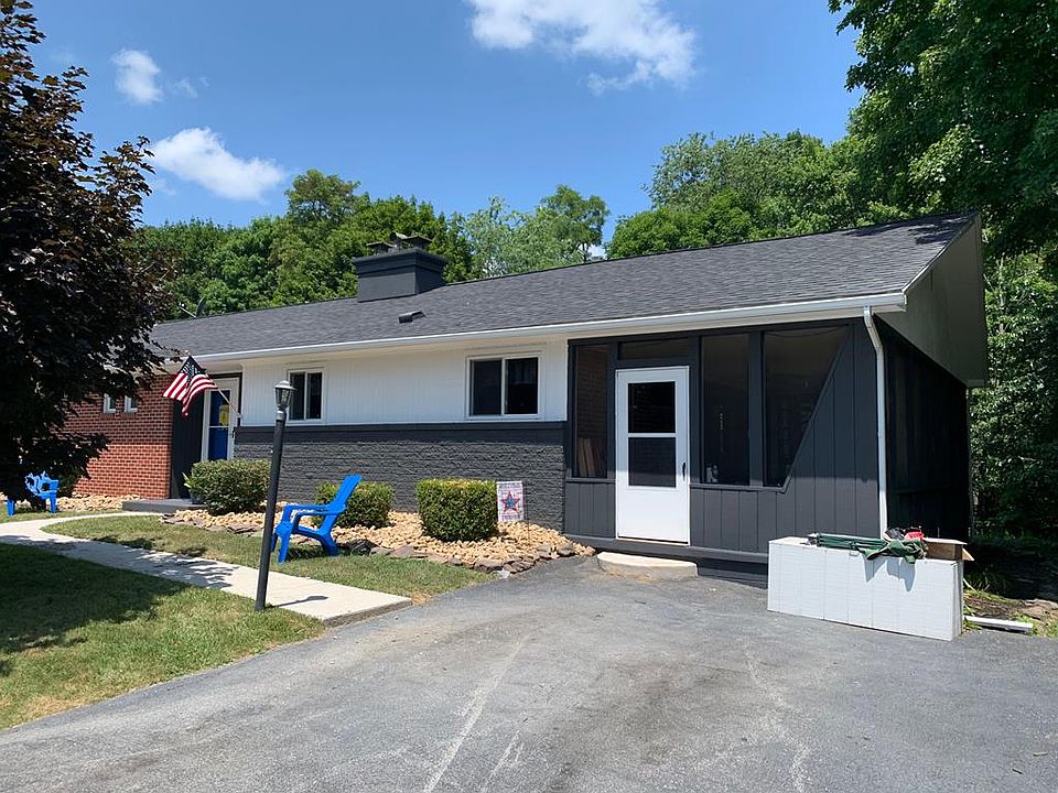 This brick ranch offers convenience of the city limits yet sits tucked away on a nice level lot. Very easy access. Upgrades include a new roof, updated bedrooms, newly remodeled bathroom, a new central heating and cooling system, and a screened in patio sitting and dining area, just to name a few. Full basement includes large den area, laundry area, and tons and tons of storage. Very nice private backyard with sitting area. Large living room includes natural gas fireplace.