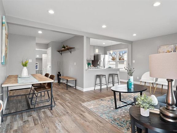- Dining/Living Room Combo, Kitchen/Dining Room Combo, Open Floorplan, Breakfast Bar, Custom Cabinetry, Granite Counters
