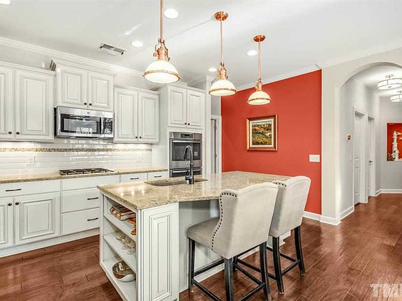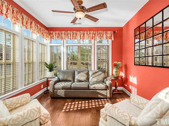 Immaculate 55+ Maintenance free ranch w/ 2nd flr bonus suite. Hardwoods throughout main living area, arched walk ways, wall niches & abundance of natural light. 1st flr features eat in kitchen w/ lg center island & dining, open family rm w/ stone fire place, sun room, laundry rm, spacious master suite w/custom WIC, secondary bedrm & hall bath. 3 season screened porch w/ sliding windows & glass door. Covered front porch & fenced courtyard. Close proximity to neighborhood amenities, RTP, trails & shopping.