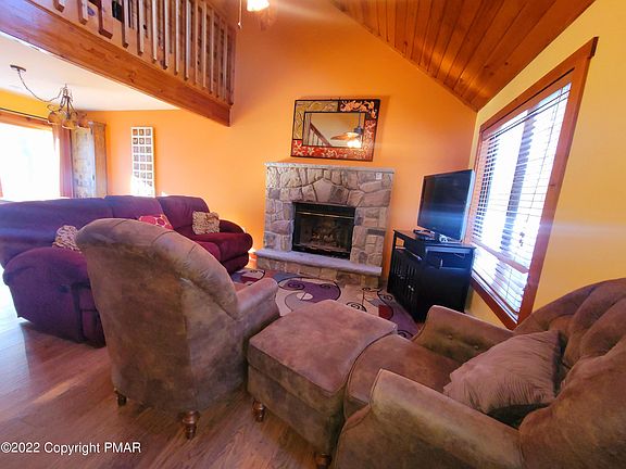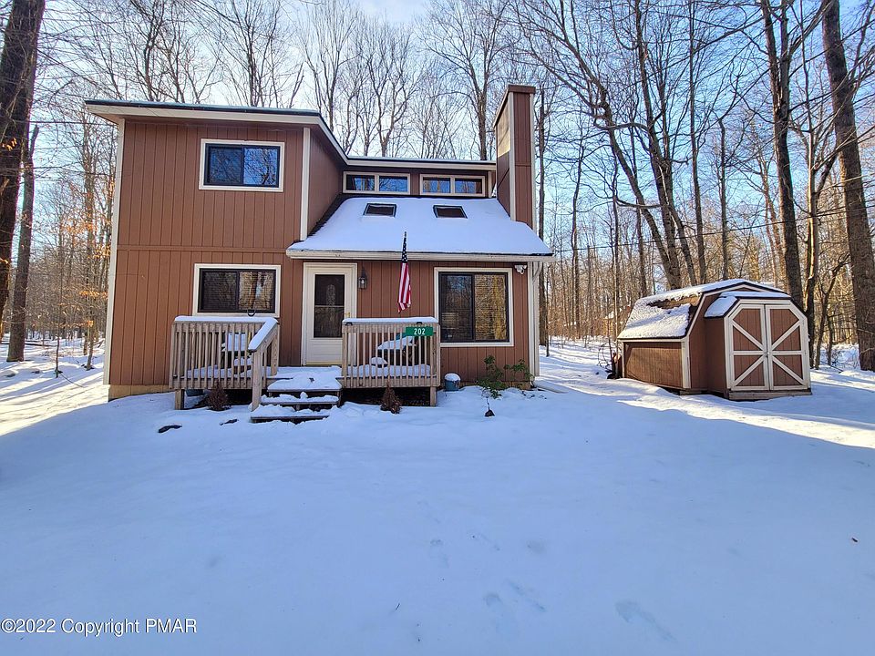 TURN KEY Salt Box style home in amenity filled Arrowhead Lakes! This home features 3 bedrooms - 2 full baths plus a loft and vaulted ceilings with skylights. Whether you are looking for your own Pocono getaway or to start investing, this is right where you need to be. The property sits on a corner lot, has a nice deck with a hot tub for entertaining and a stone faced fireplace to relax on cold winter nights.