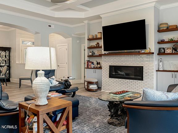 Upon entering, you're greeted by an open floor plan that seamlessly integrates the living, dining, and kitchen areas, perfect for entertaining or everyday living. The living room features a cozy fireplace, creating a warm and inviting atmosphere for gatherings.