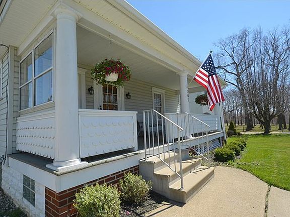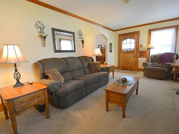 Adorable three bedroom, one and one half bath, two story home in Ewing Park neighborhood of Ellwood City. Move in ready, original woodwork, newer components like furnace and air conditioning plus new water heater. Very well kept! Hard wood floors under wall to wall carpeting. Large main bath plus basement half bath. Kitchen is equipped with gas range, microwave oven, refrigerator and breakfast nook with drop leaf table and benches, that fit perfectly. Overhead lights in bedrooms, plaster walls, neutral decor. Gas fireplace in living room. Generous sized dining room can accommodate a large gathering for special occasions. Cozy front porch and Omni stone rear patio. Detached garage is double in width, but now used as one car plus storage. Can be converted. Level driveway. Fenced garden area is ready for growing season.Home sits "a stone throw" from playground, walking trails, skate park, swimming pool and more. This sidewalk community is an ideal location and very much in demand; Under ten minute drive to grocery store and all town amenities of Ellwood City and very affordable.