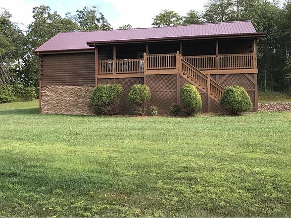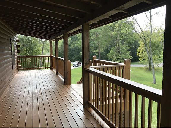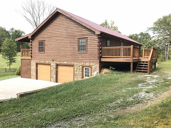 Don't miss your chance to see this beautiful log cabin in restricted neighborhood on nearly 1.5 acres. You will fall in love with the picturesque setting of this 3 bedroom, 3 full bath log home with covered front porch and large deck in the back. Walk into the open great room with cathedral ceilings, recessed lighting and cozy fireplace. Large kitchen with solid surface counter tops, lots of cabinets, bar area and all stainless appliances remain. Master bedroom also has cathedral ceilings and doors leading out to the back deck, master bath with double vanities, jetted tub to relax, separate shower, and large walk in closet. There are also 2 other bedrooms on the main floor and another bath with jetted tub/shower combo. You will also find the laundry room with storage cabinets on the main level. But it doesn't stop there......Looking for the perfect place for your man cave? Downstairs you will find a large den area with wet bar, small refrigerator, fireplace, another full bath and plenty of room to unwind after a long day. Home has been recently stained and painted so its ready to move in. 2 car drive under garage and concrete drive just enhances the beauty of this home, and don't forget the beautiful lot with some mature trees and the creek and mountain views. Take a look today!