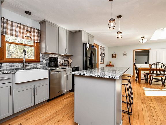 Discover the epitome of Colonial living in Halifax, MA, with this 4-bed, 3-bath gem. The living room beckons with a cozy fireplace and exterior access. The dining room, graced by a skylight and an open floor plan with a slider, seamlessly blends indoor and outdoor spaces. A family room with beamed ceilings and attic access adds character and versatility. The kitchen, with a central island and an open floor plan, is a culinary haven. All bedrooms feature ample closet space, while the main bedroom offers a walk-in closet and a full bath for a private retreat. Entertain in style in the bonus room with a wet bar and exterior access. Step outside to your private oasis with an above-ground pool and two storage sheds, enhancing the outdoor experience. This Colonial residence combines classic charm with modern comforts, making it the ideal home. Don't miss the opportunity to call this Halifax gem yours – schedule a showing today!