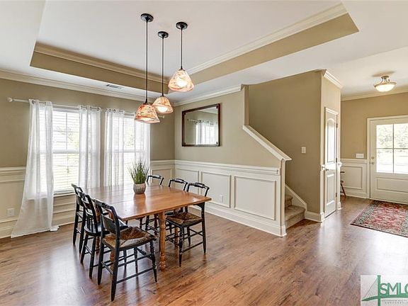 Step into this gorgeous bright home and immediately fall in LOVE! This home is full of upgrades including an entry and formal dining room with wainscoting and tray ceiling. The main level has crown molding throughout and vinyl plank flooring in entry, powder room, dining room and kitchen. The family room is huge and has an amazing coffered ceiling and a gas fireplace with a stunning mantle. The kitchen is open and has granite and an island with breakfast bar. At the end of the day head upstairs where you will find 4 bedrooms, 2 more bathrooms, and an oversized laundry closet. The lovely master suite features a vaulted ceiling, upgraded luxury bath with dual sinks, soaking tub, separate shower, and huge walk in closet. The yard includes a large side yard and large fenced in back yard. One more thing... LOCATION, LOCATION, LOCATION! This home is located in the South Effingham School District and just a short drive to amazing shopping and dining! Call today to tour this home!