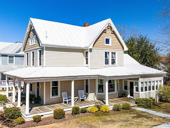 Welcome to this charming, historic, water view home, beautifully blending timeless character with modern upgrades. The heart of the home is its stunning kitchen, remodeled in 2022. It features custom cabinetry, a large island, and reclaimed pine floors that add warmth and character, while the upgraded appliances and finishes provide all the conveniences of contemporary living. The laundry and powder room have been thoughtfully modernized for efficiency and comfort. The home maintains many of the unique features that make old houses so special, including accented exposed brick, a classic fireplace mantle, and a pocket door that whispers of its rich history. Enjoy picturesque views of the Neuse River, and relax on your front porch watching the beautiful sunsets across the water. You have the the added bonus of a park across the street. Recent updates include brand new thermal windows on the first floor for energy efficiency, a new concrete driveway, and fresh paint, ensuring that this home is as functional as it is beautiful. Perfectly situated within walking distance of downtown Oriental's shops and restaurants, this home offers the best of both historic charm and modern living in a vibrant, convenient location.