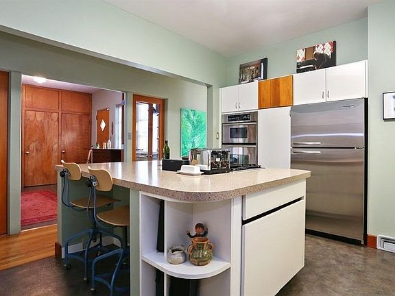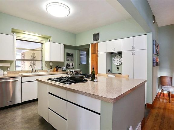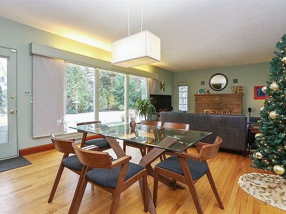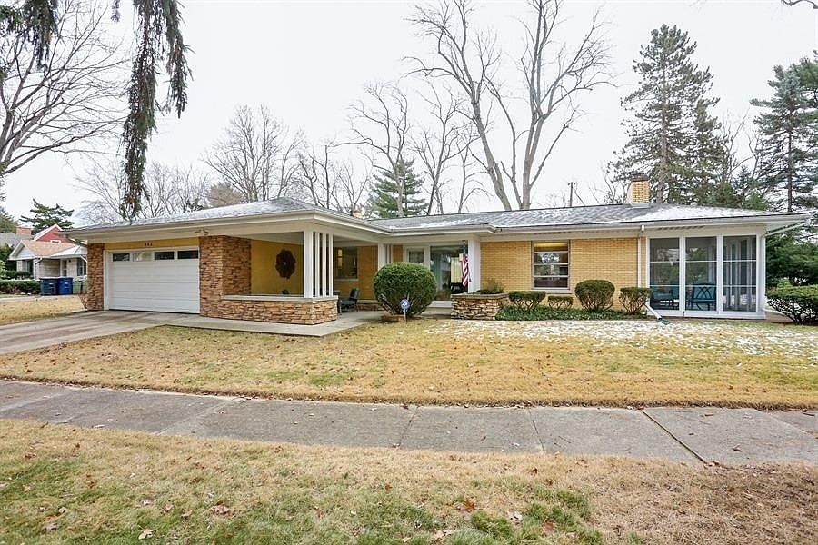Mid-century modern ranch-style home with great curb appeal and tons of character! Expansive panes of glass allows light to enter rooms from multiple angles and brings the outdoors in. Large living room/dining room boasts hardwood floors and stone fireplace which leads to screen porch surrounded by beautiful landscaping. The covered front porch adds another option to outdoor lounging. Updated kitchen has euro-style cabinets, stainless appliances and large working island. French doors off kitchen open to a room with a wall of cedar closets and storage currently used as a den but could be third bedroom. Nice sized master suite and 2nd bedroom have hardwood floors and roomy closets. The basement provides a cheery laundry room and oodles of storage as well. And not to forget the clean, organized 3-car garage is perfect for projects, storing toys or simply parking multiple vehicles.
