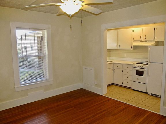 Nice ground floor apartment with covered front porch - washer and dryer included! Hardwood floors throughout, except for tile in the kitchenette and bathroom.