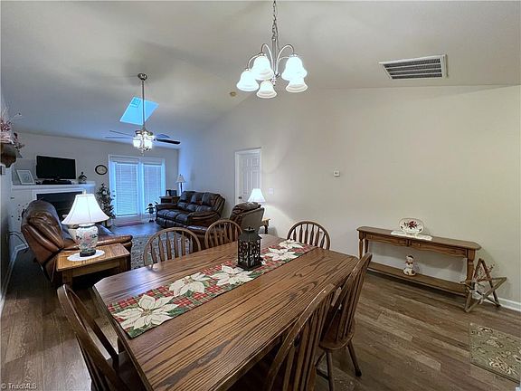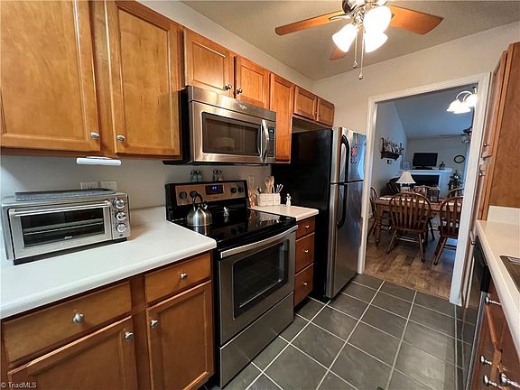 Charming main-level living with vaulted ceilings and a skylight, this townhouse has plenty of space and the convenience to town. The living room has double French doors that opens to a private patio with an extra storage closet. The kitchen includes a cozy breakfast nook, and the refrigerator will remain. The large primary bedroom has a walk-in closet, and the adjoining bathroom has a convenient step-in shower.