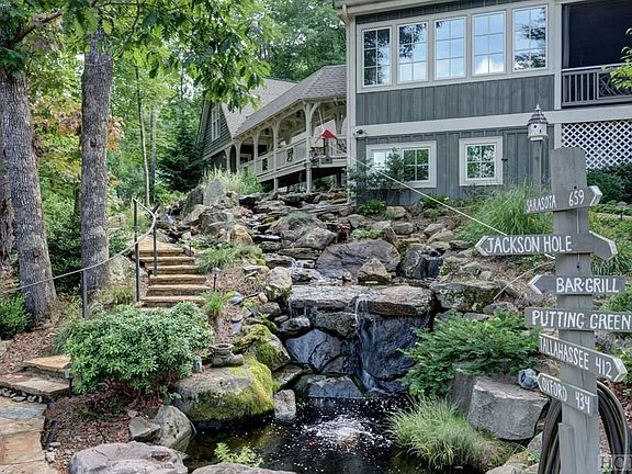 This is a spectacular three bedroom three and one-half bath home located less than 1/2 mile from the entrance into Sapphire National Golf Course. Walking in the front door you are greeted with the great room with cathedral wood ceiling with massive beams and Tennessee Fieldstone gas fireplace. This room opens out onto a large screened porch with another Tenn.Fieldstone gas fireplace with built-in tv above mantel. The generous Chef's kitchen has SubZero refrigerator/freezer, Thermador gas cooktop, granite countertops with island and bar sitting area, custom cabinetry with lots of windows that open up to porch. The main level features hardwood floors throughout. This home offers a great view, putting green with chipping grass, electric trolley system for transporting food/drinks,extensive outdoor lighting/music system, fire pit and 120' cascading waterfall that runs under walkway into a goldfish pond. A tin roof covers an outdoor grill area. The grounds are beautifully landscaped creating your own back yard heaven and wonderful setting for entertaining your friends and family. Master is located on the main level with a master bath and powder room. The upper level offers two guest rooms, both with their own private baths. Double garage with breezeway into home has unfinished upstairs bonus room, plus extra storage sections with work bench. The home and grounds are truly remarkable! The attention to detail is superior in every way. Easy golf cart ride to Golf Course, Fairfield lake, and hiking trails .
