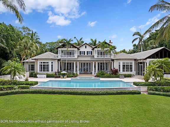 Nestled on a stunning 3.2-acre direct intracoastal site, this property offers privacy, timeless elegance, and all the current amenities Buyers expect. This newer (2008) British West Indies styled home (built by Malasky Homes) exudes casual sophistication and exceptional craftsmanship. Inside, soaring ceilings, intricate millwork, and refined finishes cultivate a warm yet luxurious ambiance. The thoughtfully designed floorplan includes five generous bedrooms (including a large 1st floor master bedroom), 7.1 bathrooms and an air conditioned 3 car garage with ample storage space. The home also boasts a welcoming family room, game room, climate-controlled wine cellar, Creston lighting system and convenient laundry facilities on both levels. The outdoor living spaces are equally impressive, with a screened summer kitchen and dining area that flow into expansive patios (both covered and open) surrounding an infinity-edge pool and spa. A winding walkway meanders through lush tropical landscaping to the private dock. Also included is a 104KW full-house generator. There is sufficient room on the property to build an approximate 2,000 sq. ft. additional habitable structure.