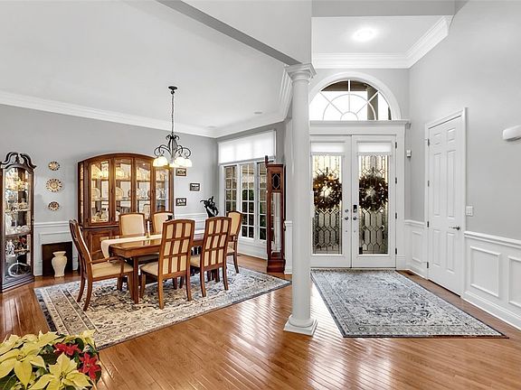 5,000 sq ft,brick,move-in lavish home w/stunning views&updates galore.Located on culdesac of luxury carriage homes in Treesdale.New roof,1 HVAC&H2O tank,freshly painted inc trim,ceilings all 3 flrs.Property w/guest parking in front.Stamped walk to coverd 2-st etched glass dbl door entry.Hrdwd foyer,gleaming picture frame mold&arch window light 1st flr.Form DinRm w/crwn,trip windows&wainscotting.Updated Powdr.Vaultd grt rm w/new gas fp.Updated bar.Wall of glass to deck-new remote awning w/lights overlooks golf course.Grt rm open to Cust kitch,hrdwd,glass fronts,bsplash,granite tops,dbl oven&cen isl/brkfst bar.1st flr laun to newly finishd grg w/epoxy flr&cabinets.Impressive 1st flr mastr,trayd ceiling,wall of windows&new bth w/marble showr,dbl basin,marble top vanity,fog-free mirrors,soak tub,heated towels.Up-office w/built-ins,Lrg suite w/Jack&Jill &guest suite w/new lighting,fresh paint,new carpet.Wlkout low lev w/patio&new privacy screen,xercise/BR4 w/full bth,game rm,storage&more.