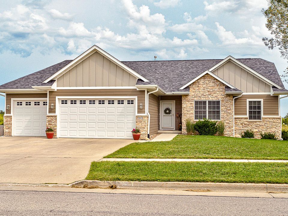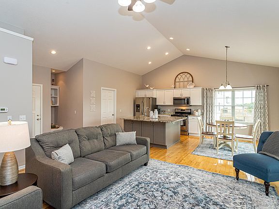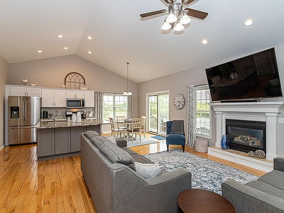 You'll love this MOVE-IN ready, WALKOUT ranch in Sunset Ridge! Featuring 5 bedrooms, 3 full baths with 2300+ sq. ft. of finished living space, 3 car garage and backing to green space. The main level offers an open concept w/living, dining & kitchen all open along w/vaulted ceilings! The updated kitchen boasts newly painted cabinetry, large center island, stainless steel appliances and granite countertops. Off the kitchen you can step out to a composite deck perfect for entertaining. Also, on the main floor you'll find the master suite w/double vanity and walk-in closet along with 2 additional bedrooms, full bath and laundry room! Lower level offers a large family room that walks out to a patio, 2 bedrooms, full bath and utility room complete with storage. Yard is fenced in and complete with storage shed that stays. Other updates include roof in 2018, LP Diamond Kote on the front of the house in 2018, BRAND NEW A/C, newer refrigerator, microwave & water heater. This home has so much to offer, schedule your showing today!