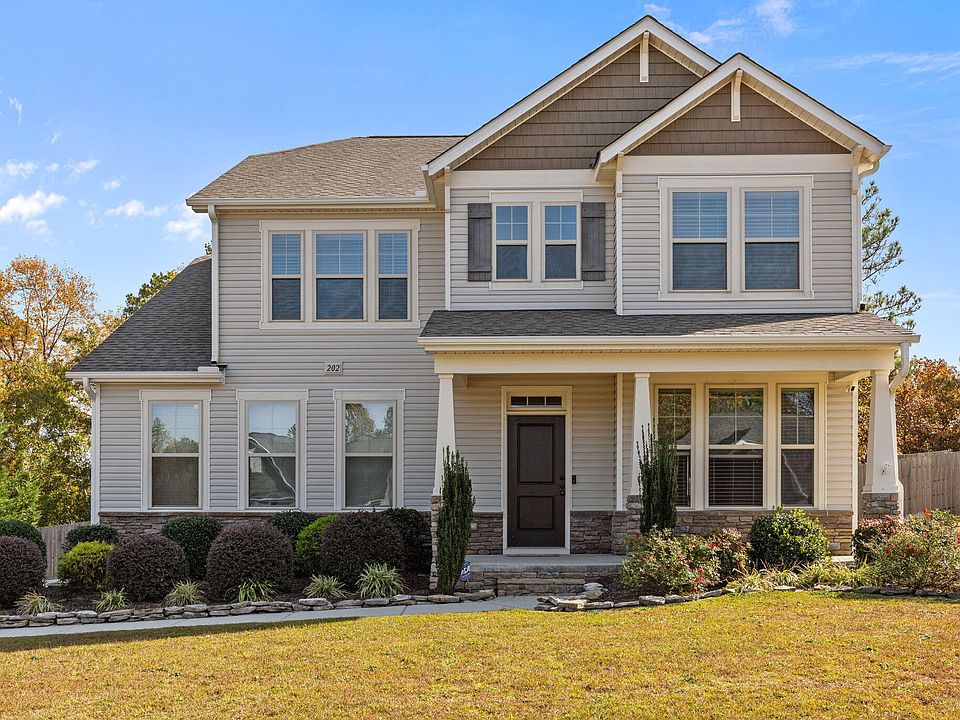 Nestled in the quiet, well-appointed Oakmont subdivision, this 2017-built, 4-bedroom, 3-bath home spans 2,876 sq ft on a half-acre lot and features a sophisticated open floorplan ideal for both family living and entertaining. The main level offers a guest bedroom and full bath, elegant formal dining, and a chef's kitchen with granite countertops and generous cabinetry that opens to the living area with gas-log fireplace. Upstairs, the primary suite invites with dual walk-in closets, a garden tub, separate shower, and dual vanities, joined by two additional bedrooms, a full bath, and versatile loft space perfect for recreation or a home office. A covered patio off the living area leads to a fenced backyard, while community amenities like a pool and clubhouse add resort-style living within the neighborhood. With no city taxes and convenient access minutes to I-95 and Fort Bragg, this home delivers luxury, space, and lifestyle in one package. 1% Incentive towards Buyer's Closing Costs up to $5K with the use of Preferred Lender-Nick Overcash with FCMA and Preferred Closing Attorney-McCall Law Firm.