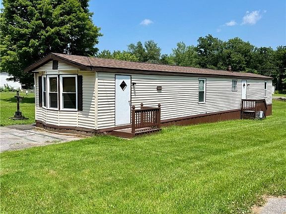 This 14x70, 3 bedroom, 1 bath home is located in Kenyon Landing Park. A quiet park close to all amenities. This home features many updates including a brand new furnace and thermostat, asphalt shingle roof, new 10x12 shed, freshly painted interior, new stainless-steel appliances and ceramic floors in kitchen, newly remodeled bathroom, new ceiling fan in living room, and new floor in primary bedroom. Panel box was recently inspected by a certified electrician. A big beautiful eat-kitchen with a glass table and 4 chairs that will stay. Enjoy the screened in porch and private deck this summer. Jordan-Elbridge school district offers a wonderful (UPK) Preschool. Public water and natural gas.