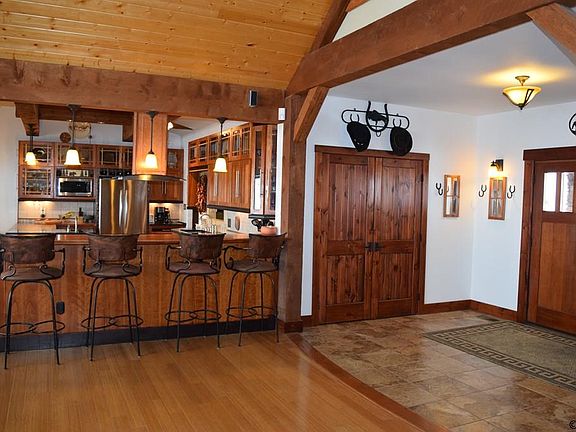 This custom home is nestled on a 74.6 acre parcel with stunning views in all directions. This mint condition home has a very open and spacious floor plan featuring indoor-outdoor living with wrap around porches, gas fire pit, an outdoor kitchen area and large windows capturing stunning views. This home has many custom features including, cherry custom cabinetry, granite & butcher block counters, slide out shelving, specialty drawers, display cabinets & ample storage areas, tall tongue-n-groove vaulted ceilings, wood & tile flooring, rock grotto decorating & dark red oak doors. This is a highly energy efficient, low maintenance, green built home with Pella argon windows. The 40' X 60' concrete block horse barn has plenty of room for your horses with ample toy storage.