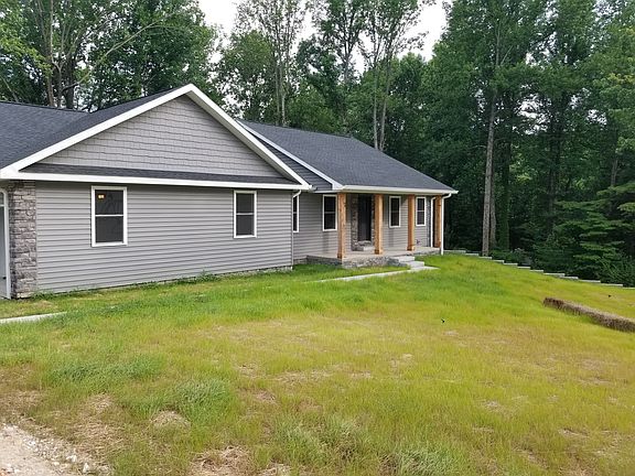 Charming rustic ranch style home with gray siding and stone and located in established subdivision with lots of privacy. Very well constructed home with 2 x 6 walls and 6" insulation with foam in the ceiling for more efficiency heating/cooling. Upper level has open kitchen/living area with vaulted ceilings and beautiful granite counter tops and new stainless steel appliances with hardwood and tile. Master bedroom/bath is located on one side with shower and jacuzzi tub and marble tops and other two bedrooms/bath is on the other. Laundry room with lots of storage and one car garage is on the upper level. Lower level has large family room with carpet and stone gas fireplace for extra heating in the winter and another are for office space with tile. Full bathroom with shower and great plus is a storm shelter or safe for added security and two car garage. Large deck outside off of the kitchen with covered porch underneath for entertaining and wooded for privacy.