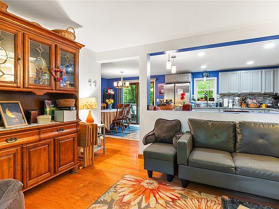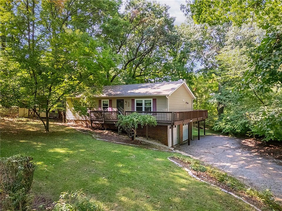 Discover your perfect retreat with this delightful 3-bedroom, 1.5-bath ranch home, set on a sprawling 2-acre lot. Enjoy the seamless flow of the updated kitchen, living, and dining areas, designed with an open-concept layout that's perfect for both everyday living and entertaining. Step through the sliding doors in the dining room onto a large deck that offers stunning views of your private, lush backyard ideal for outdoor gatherings or relaxing in peace. The primary bedroom suite features a recently renovated half bath, while two additional bedrooms share a full bath conveniently located in the hallway. The finished lower level provides versatile space for a family room, a fourth bedroom or office, along with easy access to the two-car garage. Fantastic location close to I79, Historic Harmony, Revitalized Zelienople, Cranberry Twp and downtown Pittsburgh!