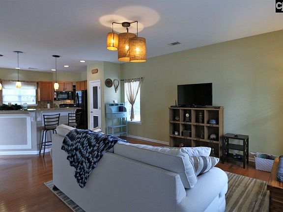 STUNNING open floor plan that is full of upgrades! A nice front porch with Stone accents welcomes you home. Downstairs features beautiful Hardwood flooring throughout with a wonderful den that flows right into the large kitchen and Eat-In area with Granite Counter Tops, Custom Backsplash, Large Island and Bar, tons of Cabinet Space, and Pantry. Walk out back to the double decks that are perfect for grilling, entertaining, and enjoying your favorite beverage while enjoying the large private backyard with fire pit area. This true 4 bedroom home has an extended master suite with a large walk in closet and the master bathroom offers a upsized garden tub/shower, double vanities, and linen closet. The community amenities include a pool and volleyball court. Zoned for award winning Lex/Rich 5 Schools and close to endless shopping and dinning, Interstates, Hospitals, and the wonderful Lake Murray. This home is a must see!