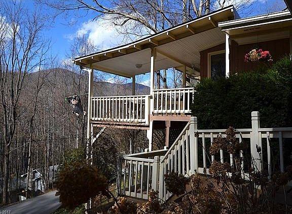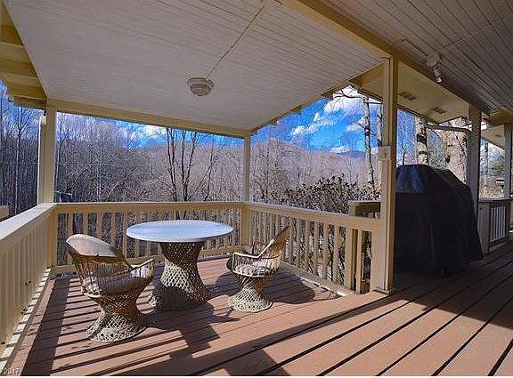 BENNETT SOLD MINE! One level living.. covered porches.. Split bedroom plan.. solid surface counters in kitchen - synthetic stone.. covered wrap around porches.. low maintenance yard.. well maintained - move in ready.. large attached workshop (heated, not included in SF).. tons of storage.. lots of windows.. neutral colors.. Convenient location to Maggie Valley... Low maintenance painted cedar exterior.. Cozy fireplace shared by kitchen and great room... Huge open great room space. Home Warranty