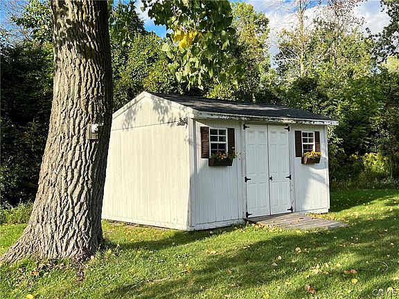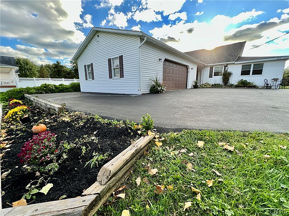 This well-maintained home has all the latest updates with privacy to boot! Located just minutes from shopping and dining in Oswego, this home is also just minutes away from Lake Ontario. Some of the updates include new windows, flooring throughout the main floor, interior painting, and blown-in insulation. Also there is a new oversized front door with double side lights from Comfort windows, new exterior lighting, new siding, new electrical, new garage door opener, new gutters, and a new roof. A complete list of improvements can be found on the Property Information sheet. The yard is beautifully landscaped. The property extends 25 ft. north from center of road, where there is a shed. The driveway is large and extends to the left side to park your boat or camper. In the lower level get ready to entertain your friends with a classic sports bar and lounge, with walk-out to the yard.