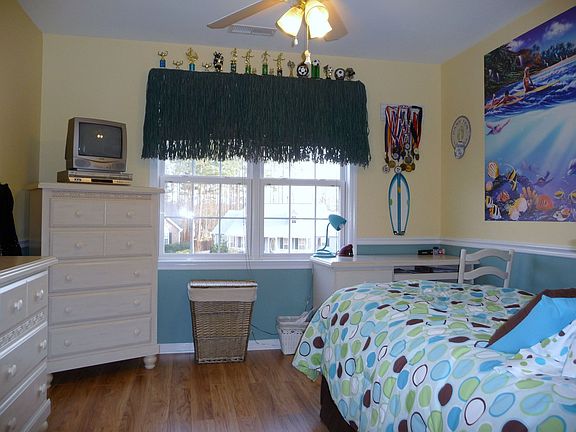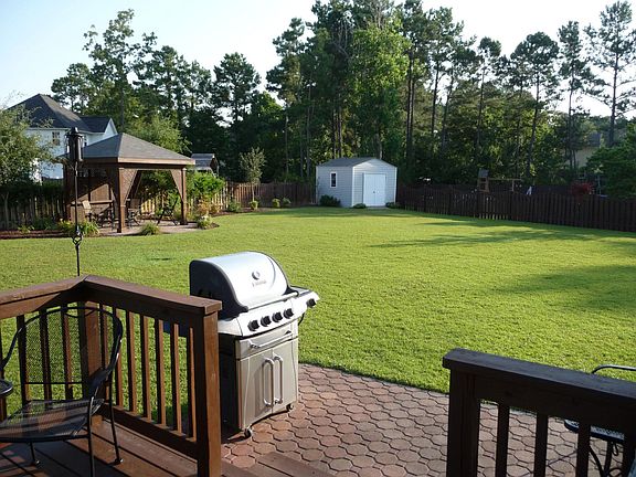 REDUCED. Agent Listed. Beautiful MOVE-IN READY 4BR, 2.5BA, home in children welcoming cul-de-sac. Spacious 2-story foyer with unique two way stairs. Lots of natural light throughout to view all the amenities such as Berber carpet, tile and wood floors, recessed lighting, neutral paint, chair railing, crown molding, ceiling fans. Large open kitchen, pantry storage, island seating, eat-in area. Convenient downstairs laundry room. Formal dining room has tile. Separate formal living room. Huge family room with custom hardwood mantel, and stone encased gas fireplace. Master suite w/huge walk-in closet, large stand-up shower, private toilet, separate Jacuzzi tub, dual sinks and linen closet. Over-sized 2 car garage that is finished and outfitted w/opener, cabinets and storage. Pull down stairs with plenty of storage space over garage. Fenced backyard Oasis with custom year-round green privacy landscaping and seasonal flowers, expanded deck with powered awning, patio, paved gazebo and full sized matching 12x12 shed. Close to schools, shopping, both military bases. Subdivision features sidewalks, Public Park < 1 mile. Enjoy living in this safe and sought after prominent neighborhood!