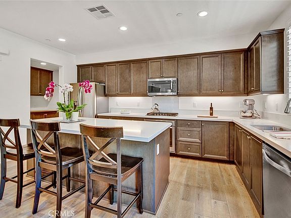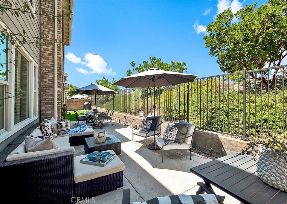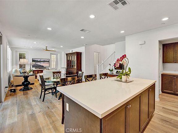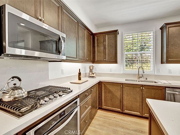 Welcome to this spacious property that lives like a single family home with multiple windows on three sides of the home and a spacious backyard. Open floorplan with a large island that seats four, a butler's pantry/coffee bar as well as a great walk-in pantry. Gorgeous gray wash cabinetry, upgraded marble look quartz countertops and stainless steel appliances give the kitchen a luxurious vibe. The open concept creates the perfect home for entertaining with the great room complete with sliding door to the generous yard. The second floor is thoughtfully designed with a loft-like office space embodying modernity and functionality with a built-in desk that is over 8 ft and works as a home office or homework station! The main bedroom has lovely greenbelt and sunset views plus a walk-in closet, the bath area has a picture window, quartz countertops, step-in shower, and a large soaking tub. The secondary bedrooms share an ensuite bathroom with dual sinks, a separate glass enclosed tub/shower, and quartz counters. There is an attached 2-car garage with an epoxy floor, overhead storage racks and an door to the backyard. The generous backyard has room to play or entertain with grassy lawn and concrete patio providing a great space for hosting BBQ's or roasting s'mores and amazing Sunset views. Enjoy several pools, gyms, arcade, pickle ball and more. Welcome home to resort living in Rancho Mission Viejo!