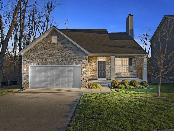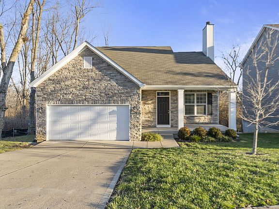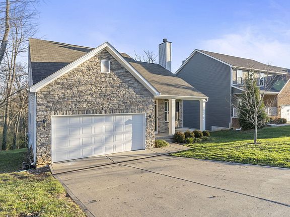 This one will make you pull the car over! Curb appeal abounds with the stone exterior and covered front porch, large enough for your favorite rocking chairs. Outback enjoy the wooded views and creek down below - offering both privacy and a tranquil setting. You'll find a firepit at the back of the property to enjoy this area in warmer months. This home is move in ready with NEW carpeting & fresh paint throughout entire home. Wonderful open floor plan allows for easy entertaining, & you're sure to love the wood burning fireplace in the great room. Ample counter space in the kitchen highlighted by stainless steel appliances. Coveted first floor primary suite is large & features an extended vanity top, soaking tub with separate shower & walk-in closet. Laundry room on the 1st floor comes equipped with washer & dryer! Upstairs you'll find two guest bedrooms, full bathroom, & a loft area that could be a home office, play room or additional living space. You can nearly double the size of your home by finishing the full, walkout basement that already has a rough-in for a full bath. Call today to schedule your private tour.