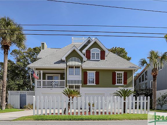 This lovely Tybee retreat is bright and open. It also offers peace of mind with with a full home back up generator. Located just 2 blocks from beaches and an easy walk or bike ride to shops and restaurants. Features include 3 garages, vaulted ceilings, plantation shutters, home office, beautiful hardwood floors, and jetted tubs. Main living level has open concept living and kitchen area with gorgeous back deck and home office area. The large laundry room, 2 bedrooms and full bath are on first level as well. Owner's suite on top level with it's own covered deck, wet bar and enormous closet. The pull down attic is the entry to the incredible crow's nest where you can enjoy views of the ocean. Top floor also boasts expansive bath with double vanities, garden tub, large separate shower and water closet. Many other extras including new roof, new HVAC, hurricane shutters, hot tub room, tons of storage, and teen or in-law suite on ground level.