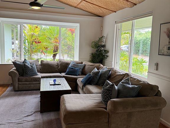Beautiful partly Furnished 5 bedroom 3 bath home including all utilities and enclosed garage. Located just a few minutes from Kailua Beach and Kailua town..Fenced in yard and Split AC This is a very private main house with private fenced in yard, but there are Separate Units in the back of property with their own entrance This beautiful home is well maintained with landscaping service and quarterly pest control . Utilities are included. There's an enclosed garage with lots of storage... Split AC in the home