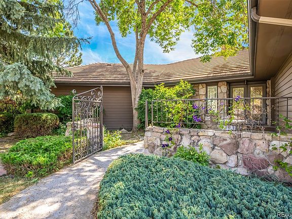 Welcome to a beautiful lot in Plum Creek, featuring stunning mountain views and almost half an acre of land. This custom-built ranch home offers a unique design with architectural details throughout. Enjoy the front courtyard with a water feature and mature landscaping or the beautiful deck featuring wrought iron railings, and below, a fenced backyard courtyard providing plenty of privacy with perennial gardens. Step inside the beautiful entryway where you’ll find vaulted ceilings with beams and two beautiful rock fireplaces. Large windows flood the home with sunlight and showcase the views. Hardwood floors extend through the entry, kitchen, and nook. The open and bright great room includes a see-through rock fireplace, while the kitchen offers a cozy hearth room. The formal dining area is open to the great room and surrounded by windows.The main level master suite includes an updated five-piece bath, dual walk-in closets, and deck access. The lower level walkout has three more bedrooms, including a large guest suite with a private attached bath. There is also a family room with a rock fireplace and walks out to the backyard courtyard. Schedule a showing today.