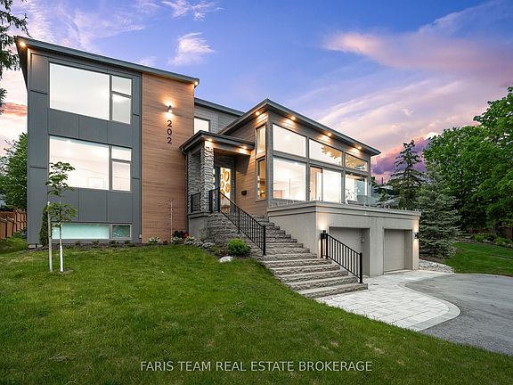 Top 5 Reasons You Will Love This Home: 1) Welcome to 202 Kempenfelt Drive, an extraordinary custom-built residence completed in 2020, ideally located across from the shimmering shores of Kempenfelt Bay, combining timeless sophistication with superior craftsmanship, this home offers an unparalleled lifestyle in one of Barries most prestigious settings 2) Inside, hickory hardwood floors set a warm and elegant tone throughout the main level, with a chefs kitchen that is a true focal point, featuring a striking waterfall quartz island and premium finishes, alongside a grand living room equally impressive, with soaring 10'16' ceilings, a dramatic gas fireplace, and floor-to-ceiling windows that frame unobstructed lake views, seamlessly connecting to a private balcony for refined indoor-outdoor living 3) A dedicated office with lake views, a guest bedroom, and a stylish powder room complete the main level; upstairs, the serene primary suite offers a personal haven with panoramic views, a spacious walk-in closet, and a luxurious spa-inspired ensuite, along with two additional bedrooms that share a beautifully designed bathroom, and a well-placed laundry room adding everyday convenience 4) The fully finished basement presents versatility with a spacious recreation room, full bathroom, mudroom with walk-in closet, and a home gym that could easily serve as a fifth bedroom 5) This remarkable property presents breathtaking scenery with walkable access to beaches, parks, trails, restaurants, and the lively Barrie Farmers Market, delivering the very best in waterfront living. 3,379 above grade sq.ft. plus a finished basement.