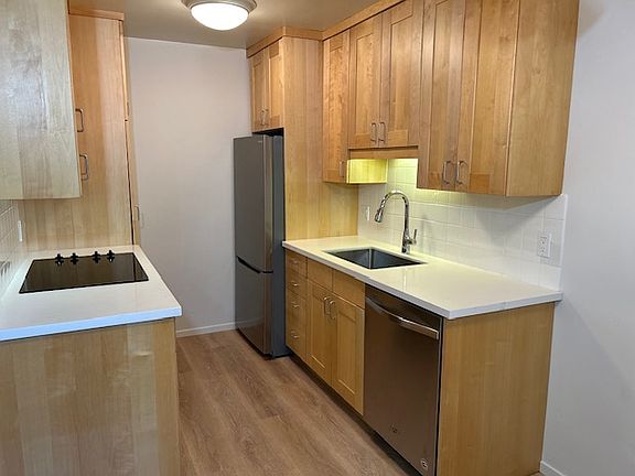 Cozy end unit. Two bedroom, one bathroom, deck with pool view. Newly remodeled kitchen with stainless steel appliances. Ideally located near College of Marin, Woodlands Market, and hiking trails. Beautiful view of Mount Tam from bedrooms. Part of a 22-unit community with many long-term residents. Includes separate storage unit, water, garbage, basic cable at no charge. Pool and washers/dryers on-site. Covered parking for one car (uncovered parking for second car, parked in tandem). Near intersection of Kent Avenue and Hillside Ave in Kentfield. Kent school district. Available 02/15/2025. One year lease. Rent: $2,845.00 Deposit: $2,845.00 Cleaning Fee: $500.00 No dogs or cats allowed. No smoking allowed. $500 cleaning fee. One year lease.