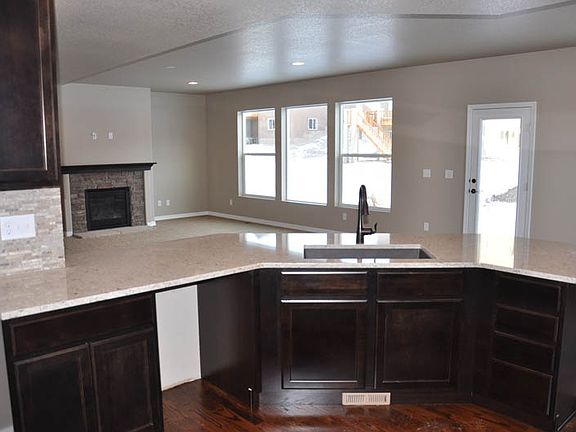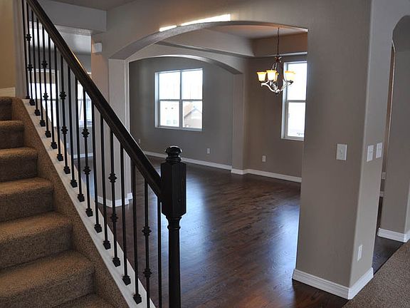 Monarch floor plan, two-story plan, 4,546 sq. ft., elevation "B" with front porch, siding and stone exterior. Four bedrooms plus Loft and Study, 2.5 baths, three-car garage with service door and pre-wire for openers. Unfinished basement. Four bedrooms plus Loft on upper level. Great Room and separate formal Living Room. Formal and informal Dining areas. Master Bath includes tile flooring, walk-in closet, oval soaking tub, separate shower with seat, and Livingstone countertop with dual undermount sinks. Kitchen includes breakfast bar, canned lighting, upgraded Maple cabinets with Designer uppers and undercabinet lights, upgraded Cambria Quartz countertops with full tile backsplash, undermount Blanco Precis sink, and stainless steel appliances including smooth-top electric range (gas line included for possible gas range upgrade), built-in microwave above, and dishwasher. Gas fireplace with stone face and wood mantel in Great Room. Oak hardwood flooring in random-width planks in Entry, Hallway, Living Room, Dining Room, Powder Bath, Kitchen and Nook. Upgraded carpet and 8 lb pad. Upgraded tile and accents in baths. 50-gallon water heater. Rounded bullnose corners. Knuckle iron pickets at stairs and Loft. Gas line to patio. A/C prep package. Upgraded blown-in fiberglass insulation in exterior walls. Optional windows included in Living Room, Breakfast Nook, Master Bedroom, and Master Bath. 2" faux wood blinds included in upper level beds and baths. Oil rubbed bronze hardware and bath faucets. Upgraded Toasted Sienna interior lights. Ceiling fan pre-wires included for future fans in Great Room and Living Room. Electrical outlet added to Garage. Upper level Laundry with base cabinets included. 10x10 patio off Nook. Unfinished basement with potential for 5th & 6th bedrooms, a bath (rough-in plumbing included), and recreation room. Lot #5 Block 20 Phase 4 is 9,284 sq. ft. and backs northeast. Front yard landscaping with sprinkler system included!