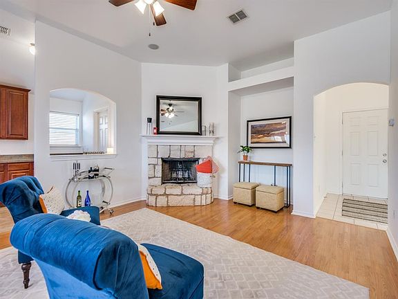 Move in ready ranch in great community in Ponder. Large quarter acre lot & no hoa make this home and neighborhood perfect in close knit town. Home is open, light & bright. Freshly painted, no carpet, newer roof, hvac -with upgraded air filtration system- & hwh. Kitchen is huge & open to the dining and living area making this home ideal for entertaining & family time. Stone fireplace, ready for Christmas stockings anchors the living room next to media niche with flat screen wiring. Split floorplan for maximum privacy. Guest bedrooms are large sized with walk in closets. Primary bedroom has ensuite bath with soaking tub & separate shower with dual vanities. Concrete back patio recently added to large back yard.