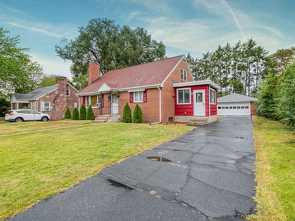 Are you looking for a Move-in ready, four bedroom home w/ 2 car garage, in this sought after Alden section of Chicopee? Here is your chance to own an immaculate brick Cape. The beautifully tiled, eat-in kitchen leads you to a spacious living room featuring hardwood/wood flooring, and is equipped with a wood burning fireplace; just in time for the holiday's! Two bedrooms with gleaming wood flooring and an updated full bath are all on the first floor. Second floor features two bedrooms, with carpet and plenty of built in closet/storage space. You will enjoy the enclosed side porch, for additional space and even more space in finished family room found in the basement, with a built-in BAR!! Heating system has been changed over the years and roof is approximately 7 years old APO. Laundry in Basement.