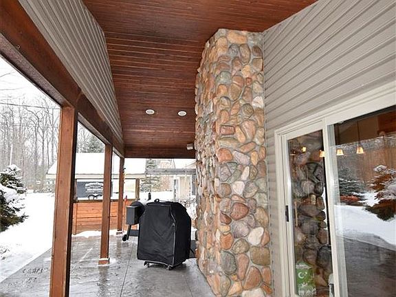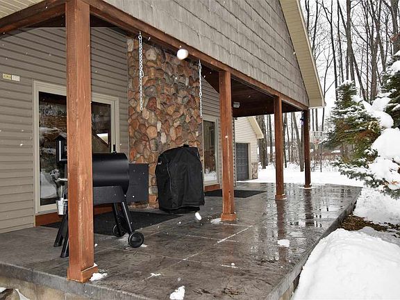 UPSCALE HIGH END home within a mile of the Beautiful Higgins Lake! This home is SPECTACULAR from top to bottom. This home has 4 bedrooms and 3 1/2 bathroom and partial basement, 2 garages and that is where normal ends and extraordinary begins. It starts with the drive up, 2 paved driveways leading to the 2 garages, professionally landscaped grounds, stamped stained concrete wrap around covered porch. Garage 1 has a bonus room above for extra storage or hang out room for the kids, exterior wood burner for warm efficient heat (optional use) and outdoor kitchen area. Walk inside and it is like no other the Slate Stone floors throughout the kitchen, dining and great room just sparkle and shine. The kitchen area is embellished with high end stainless appliances, granite counters, lots of cabinets, coffee nook and griddle area. Dining has a extravagant built in heated granite dining table, fireplace and ambient lighting. Great room has slate stone heated flooring with complete wet bar with granite for entertaining. Bedrooms are both newer carpet and wood, Bathrooms look like they belong in a magazine with granite counters tile floors and shower. Partial basement is perfect for family room entertaining, has tons of storage and 2nd laundry room. Home is heated with forced air natural gas and A/C but has a second boiler system with exterior wood burner for fuel if you so choose. Last but not least a whole house generac generator so you will never lose your power. Call today for your private tour you will not be disappointed. ** ATTENTION ALL Buyers attending a showing must sign SHOWING CERTIFICATION and RELEASE PRIOR to showings ** All attendees wear facial covering... make sure buyers avoid touching all surfaces...please remove shoes... once showing is complete, please sanitize all light switches, door handles, lock box, etc... and finish showing with extended conversation(s) outside