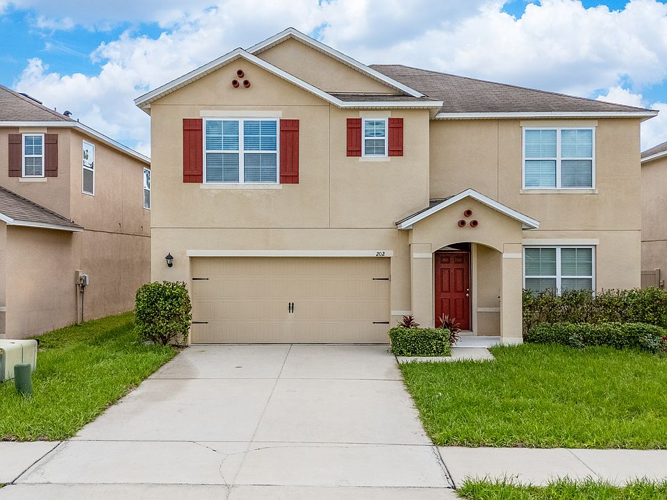 Welcome to 202 Lazy Willow Drive, a beautifully remodeled 2,696 square feet home nestled on a quiet cul-de-sac in Davenport, Florida. This spacious 5-bedroom, 3-bathroom residence features a thoughtfully designed layout with one bedroom and a flex space downstairs perfect for a guest room, office, or play area. Upstairs, you'll find a generous loft space ideal for a media room, second living area, or homework zone. The oversized primary suite offers plenty of space for a sitting area or retreat.