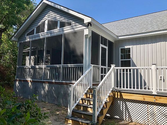 Home was newly constructed on the site where the old house existed before. It is a 3 bedroom 2 ceramic tile bath home. It has a soundproofed great groom that separate the Master suite from the guest bedrooms and bath. There is a two car garage with installed wheelchair lift in the garage. It has an 18’ x 19’ screened back porch with an an attached TREX deck. It has a large laundry room and pantry. Flooring throughout is Luxury Vinyl Plank except for the tiled baths. It also has an outdoor hot water shower.