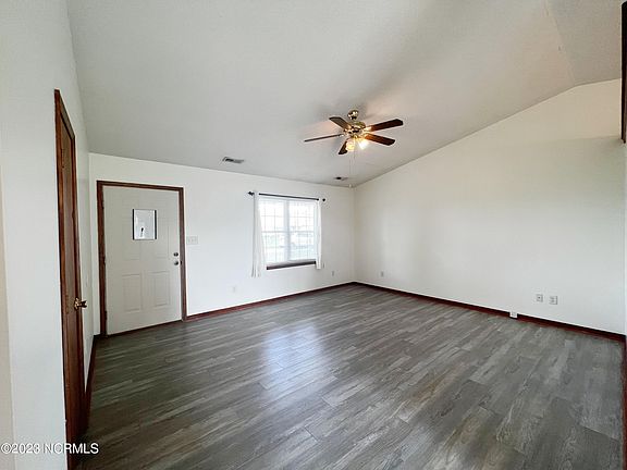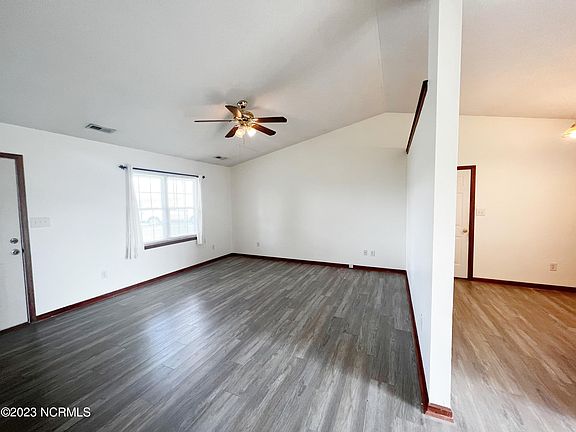 Welcome to Cherrywood subdivision! A Well-established neighborhood outside of city limits with NO HOA!! This inviting 3 bed/2 bath home is close to schools, shopping, restaurants, beaches, military bases and much more! Upon arriving, you are welcomed by mature landscaping and a covered front porch overlooking the cul-de-sac. Entering the home you are greeted by the main living area that features vaulted ceilings, LVP flooring with enough space to entertain guests. This dining combination includes a slider with outdoor access and overlooks into the kitchen space that allows garage access for convenience. The kitchen boasts plenty of cabinetry, stainless steel refrigerator. Heading down the hall includes 2 guestrooms, a full bath and the primary suite. The suit features tons of natural lighting, a double closet with one as a walk-in. Check out the size of this backyard! plenty of space for entertaining, BBQ'ing and much more! Architectural Roof installed in 2021. Schedule your tour today!