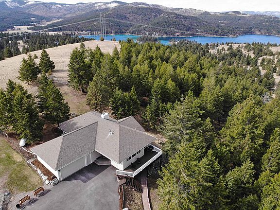 Incredible property perched near the top of Lone Pine with almost 7 acres of beauty, privacy and space. The home is 3204 square feet with four bedrooms and four bathrooms and has been updated with new flooring, new kitchen countertops and appliances, custom handcrafted cabinets, trim, and doors made with local Montana wood, updated bathrooms, paved driveway, and even a dog washing station! Both bedrooms downstairs have ensuite bathrooms, making this home perfectly set up for hosting out of town guests or family! There's an expansive deck for entertaining and taking in the views, and a hot tub pad. The icing on the cake is the large 30 x 50 shop with a lovely guest apartment. This property is very near the entrance of Lone Pine State Park which encompasses 270 acres with 7.5 miles of trails for hiking, mountain biking, snowshoeing, and horseback riding, however you're just minutes to all the amenities of Kalispell including the hospital, shopping, and schools. This property has been meticulously maintained and cared for and is not one to miss!