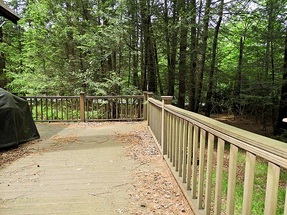 CREEK VIEW 4 Bed 2 Bath UPDATED Chalet w/ Open Living/Dining Room w/ Open Rafter Ceilings, STONE Fireplace w/ Pellet Stove, Slides to Deck. Kitchen w/ Corian Counters & Maple Cabinets, First Floor Bed & Bath. Master Bed w/ VAULTED PINE CEILINGS. 2 ADDITIONAL Bed w/ Open Rafter Ceiling. FULL BATH. LARGE Deck, PRIVATE Back yard w/ FIRE PIT area OVERLOOKING creek. NEW WINDOWS & Home is also WALKING DISTANCE FROM LAKE & POOL! This home is a GREAT BUY!! LOW Taxes in a PREMIER Lake Community! MUST SEE!