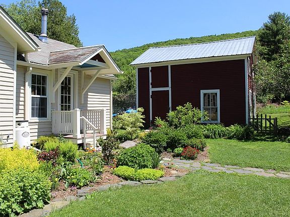 Beautifully restored 1875 farm house with flexible floor plan. On the first floor is an open kitchen and dining room area that also functions as a family room. Living room with wood stove , first floor bedroom and full bath. THere is large mud room also with wood stove , laundry and storage. The second floor has master bedroom, 2nd bedroom and office or child's bedroom. This is sunfilled and with pine and maple floors throughout. It is abundantly charming with original details and built-ins. There is a two story barn which could have animals. Plus a converted garage which had been used as a dry and heated studio. There are established gardens for vegetables, perennials and fruit trees. This is a sweet property with many upgrades. New windows, updated electric and recently painted. 5 minutes to Shelburne Falls and Ashfield Lake. 20 minutes to Greenfield and 30 to Northampton. All this and Comcast too.
