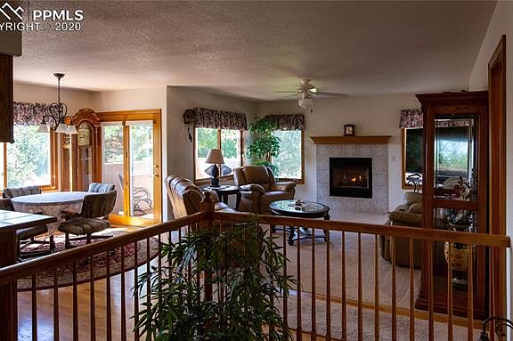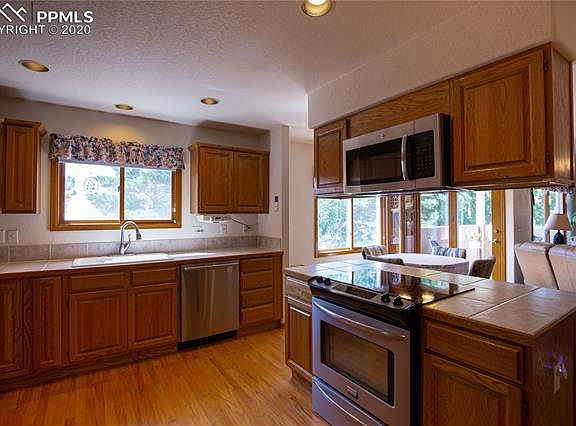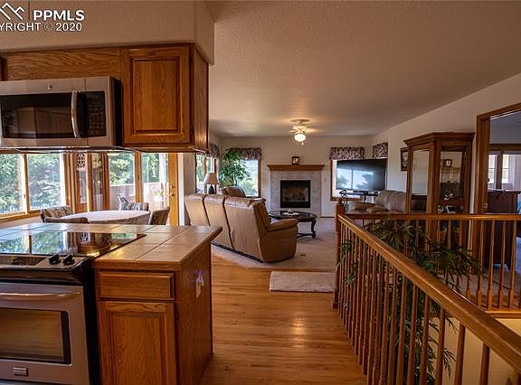 Don't Miss This Opportunity! Desirable South Facing End Unit w/ Mountain & Air Force Academy Views! Excellent Location in Complex Provides an Abundance of Light Year Round & Passive Solar in Winter for Low Heating Costs. Home is in Pristine Condition and Move-in Ready, Offering Complete Main Level Living. Rich Hardwood Floors Extend from Entry through Kitchen & Dining Area. Open Kitchen Has Upgraded Stainless Steel Appliances, Pantry & Cabinets w/ Pull-Out Drawers and Counter/Bar. The Spacious Dining Area Has Mountain Views & Walkout to Deck. Great Room Has Gas Fireplace. Main Level Offers Master Bdrm w/ Vaults, Ceiling Fan, Walkout to 2nd Deck & Large Walk-in Closet. Adjoining 4-Pc. Bath Has Extended Counter w/ Double Sinks & Jetted Tub/Shower. There is a 2nd Bdrm (or Study) on Main and a 2nd Full Bath w/ Skylight. Garden Level Basement Has Rec Room w/ Gas Fireplace, 2 Addnl Bdrms, Full Bath and Plenty of Storage. Added Amenities: Well Managed HOA (See List of Coverages) with Low Monthly Dues ($215), Central A/C, Humidifier on Furnace, New Garbage Disposal, Washer/Dryer Hookups on Main Level & in Basement, Security System, Front Security Door, Storage Cabinets in Garage, All Kitchen Appliances and Washer/Dryer Included.