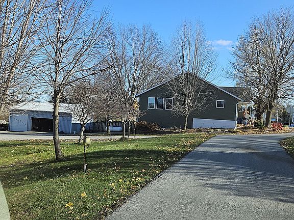 Small town living 20 min from Davenport, Eldridge. North Scott school district. Double corner lot, fenced yard, 24 x 36 3 car detached garage with additional parking and rv plug in. 2 car attached. Walk out basement, main floor laundry, owned LP tank & water softener. Appliances to stay. Soft close cabinets, double hung, easy to clean windows. Open concept. Move in ready!
