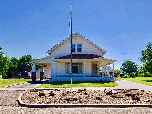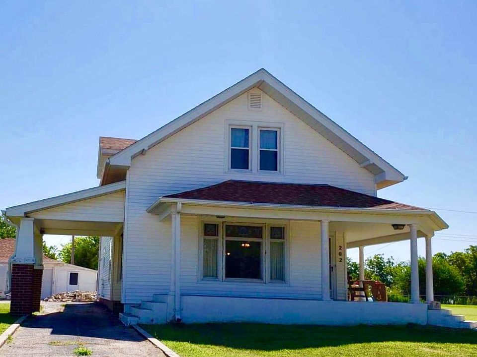 NEW LOWERED PRICE TO $89,000!!! 202 MAIN STREET LEBANON,KANSAS CAPTIVATING HOME with WRAP-AROUND PORCH & PORTE-COCHERE This captivating beauty is a masterpiece from the 1905 era. You will immediately be taken back by the curb appeal of this alluring classic. It sets back from the street and is surrounded by 8 extra lots (0.65 acre). The wrap around porch provides the welcoming charm and enjoyment of small town living. A unique porte-cochere completes the sophisticated workmanship. Step inside to an open entryway. To the side, there is a parlor, which is used as an office. The oak display/book cabinet is included in the sale. The living room is carpeted and has a ceiling fan/light. South windows provide soft natural light. The dining room has carpeting, ceiling fan/light, and south windows overlooking the wrap around porch and beautiful lawn. The kitchen has new tile flooring. There is a generous number of oak cabinets with laminate countertops. This is an eat-in kitchen. Appliances remain with sale. The laundry room is off the kitchen. There is a generous number of white cabinets for storage. The main floor bathroom has tile walls. There is a tub/shower, and large vanity with mirrored cabinets. A large walk-in closet provides storage. There is also a wall of built-in cabinetry with a pullout laundry hamper. The main floor bedroom is carpeting, has a ceiling fan/light and a walk-in closet. The second floor has three more bedrooms and a bathroom. Second floor windows are new. The second floor has a ductless mini-split heating/AC system. Every room has its own unit and can be controlled separately from the other rooms. At the top of the stairway is a large landing area. There is a whole house fan. The bathroom has tile flooring, a bay of cabinetry, large vanity with mirror and side lights and shower. The first bedroom has carpeting and large closet with shelving and rods. There is soft east window lighting. The second bedroom has carpeting and recessed lighting. This room has a closet with shelving and rods. The third bedroom is carpeted and has ceiling fan/light. There is a very large walk-in closet. The hallway provides another large walk-in closet. Outside, the yard is a very generous 0.65 acre. There is an established asparagus patch, strawberry patch and a peach tree. The basement entry is on the back exterior of the house. It is a half basement which houses the Central heat unit (4 yrs old), new hot water heater, water softener, RO unit, and has additional storage/work space. The floor is concrete with block walls. There is a separate cellar/storm shelter with concrete floor, walls and ceiling. The garage is a large, 4 bay building. The south bay could be used for storage, workshop, craftwork, etc. The two center bays are large enough for your vehicles and have a large workbench. The north bay is perfectly suited for a mower, tiller, motorcycle, etc. House: 1905 Remodel 2016 House: 1,671 SQ FT Roof: 2015 Heating/AC: 2015 Water Heater: 2019 Second floor windows: New 8 Lots: 0.65 acre Property Taxes: $1,403 LISTING PRICE: $89,000